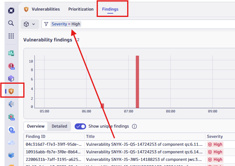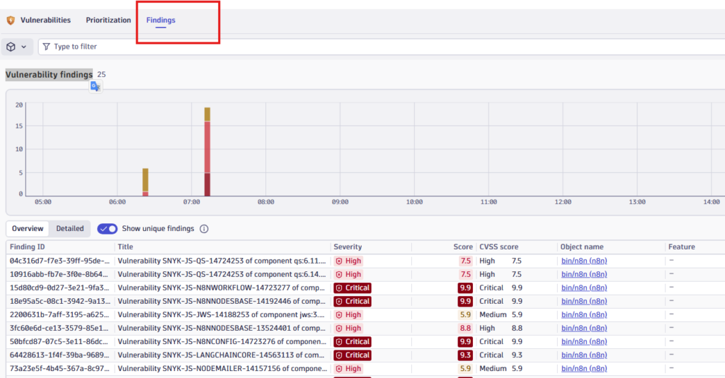 Security → Vulnerabilities → Findings (pestaña)