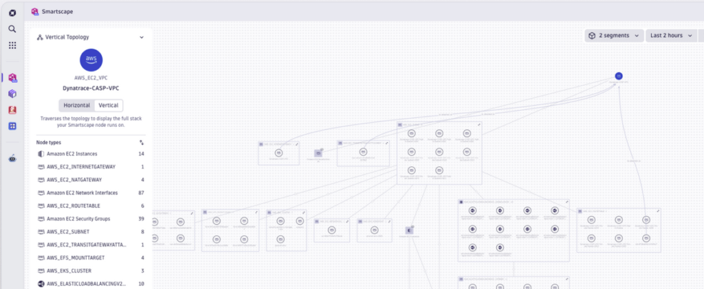 Para AWS, Smartscape captura configuración profunda como VPCs, load balancers, security groups, subnets y metadatos de cómputo, modelando estas dependencias como entidades cloud nativas. Azure llega próximamente según el roadmap.